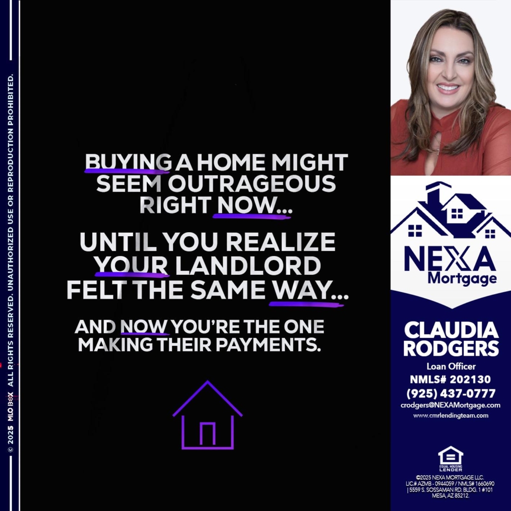 Hi, my name is Claudia Rodgers. I’m a Loan Officer with NEXA Mortgage LLC., offering personalized mortgage solutions, fast customized quotes, great rates and service with integrity.