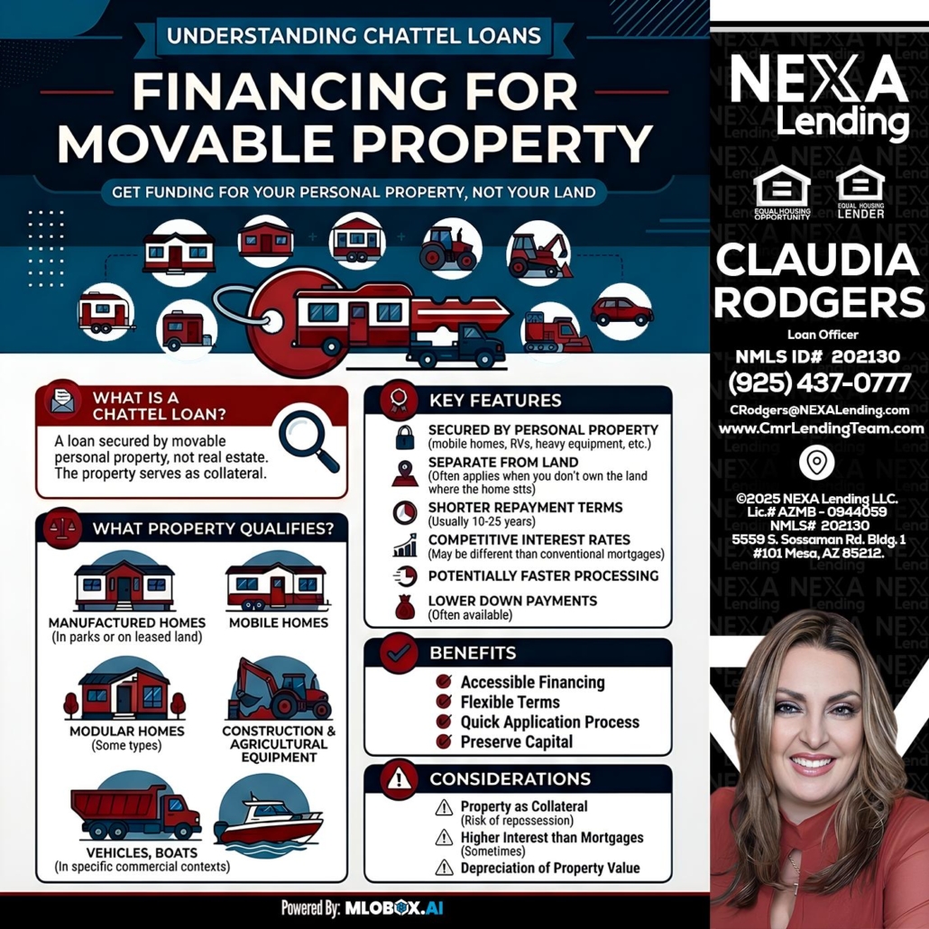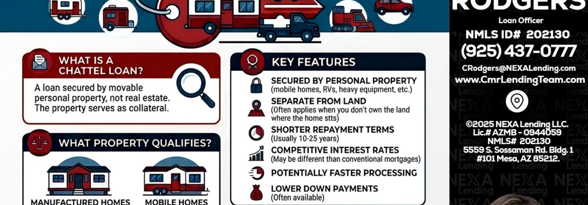 Chattel Loans - Claudia Rodgers -Loan OfficerHi, my name is Claudia Rodgers. I’m a Loan Officer offering personalized mortgage solutions, fast customized quotes, great rates and service with integrity. If you’re interested in learning more about the Chattel loan or any other, just let me know and I’ll walk you through your options.