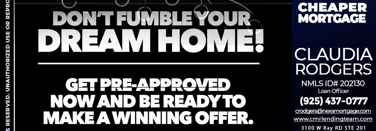 DONT FUMBLE - Claudia Rodgers -Loan OfficerHi, my name is Claudia Rodgers. I’m a Loan Officer with NEXA Mortgage LLC., offering personalized mortgage solutions, fast customized quotes, great rates and service with integrity.