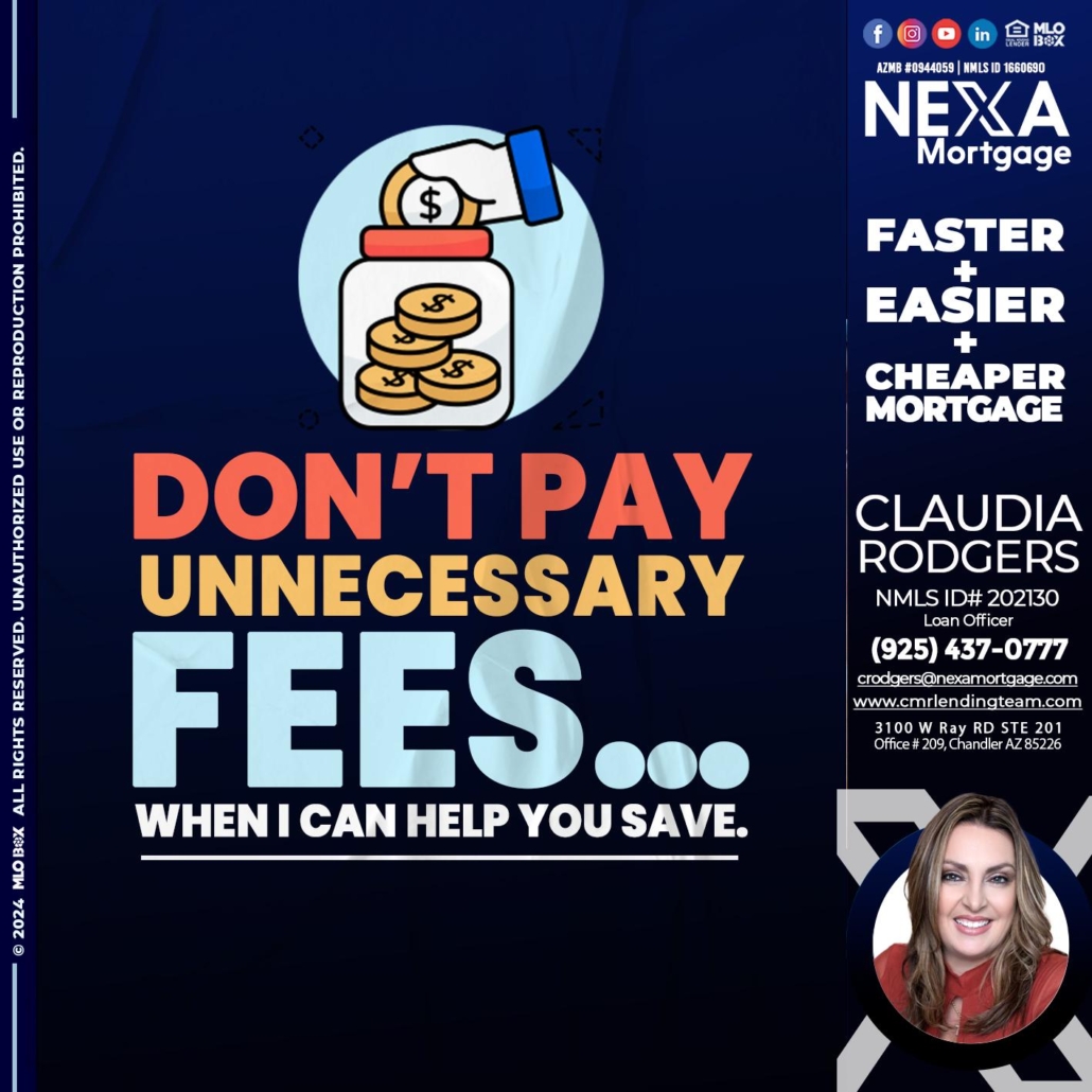 DON´T PAY - Claudia Rodgers -Loan OfficerHi, my name is Claudia Rodgers. I’m a Loan Officer with NEXA Mortgage LLC., offering personalized mortgage solutions, fast customized quotes, great rates and service with integrity.