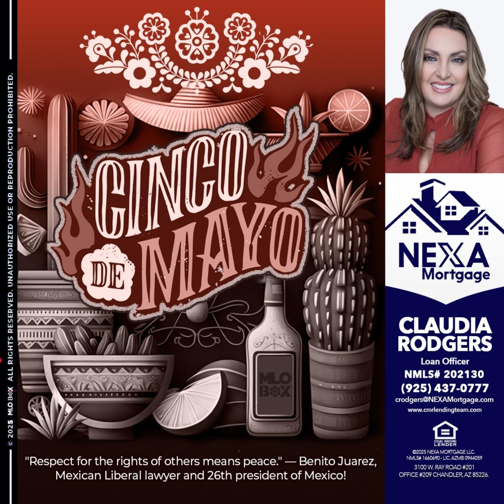 Hi, my name is Claudia Rodgers. I’m a Loan Officer offering personalized mortgage solutions, fast customized quotes, great rates and service with integrity. And I wanted to take the time to wish all my Mexican Americans friends and colleagues, a wonderful time with your families celebrating your wonderful traditions.