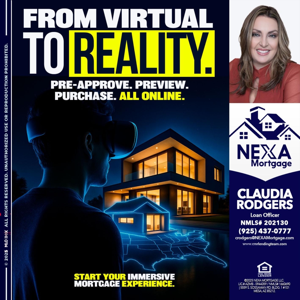 Hi, my name is Claudia Rodgers. I’m a Loan Officer with NEXA Mortgage LLC., offering personalized mortgage solutions, fast customized quotes, great rates and service with integrity.