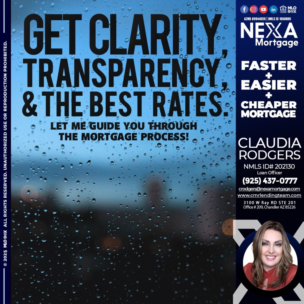 Hi, my name is Claudia Rodgers. I’m a Loan Officer with NEXA Mortgage LLC., offering personalized mortgage solutions, fast customized quotes, great rates and service with integrity.