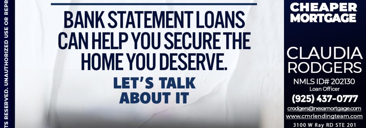 Hi, my name is Claudia Rodgers. I’m a Loan Officer with NEXA Mortgage LLC., offering personalized mortgage solutions, fast customized quotes, great rates and service with integrity.