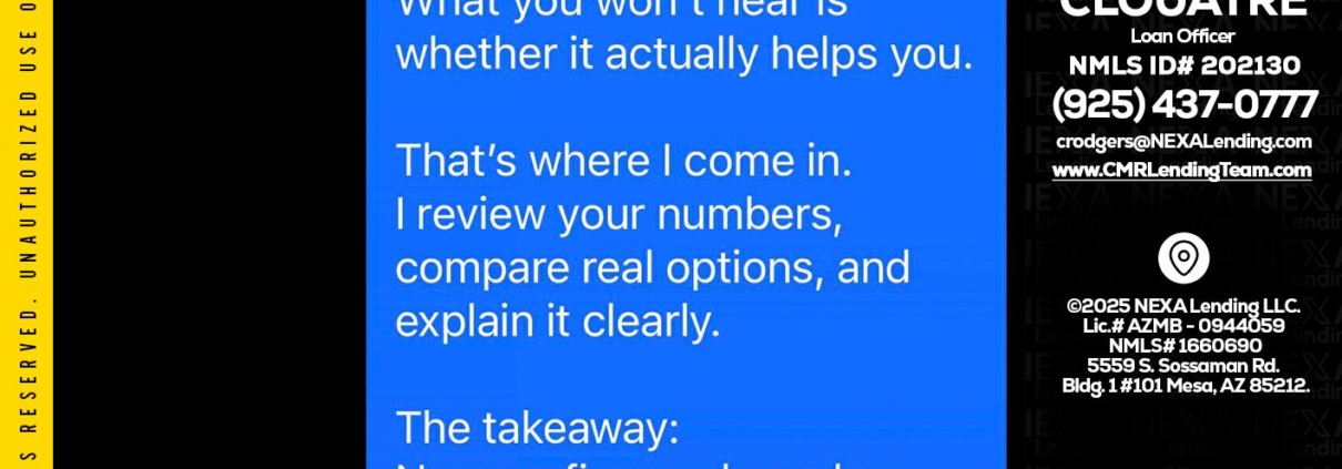 Hi, my name is Claudia Rodgers. I’m a Loan Officer with NEXA Lending LLC., offering personalized mortgage solutions, fast customized quotes, great rates and service with integrity.