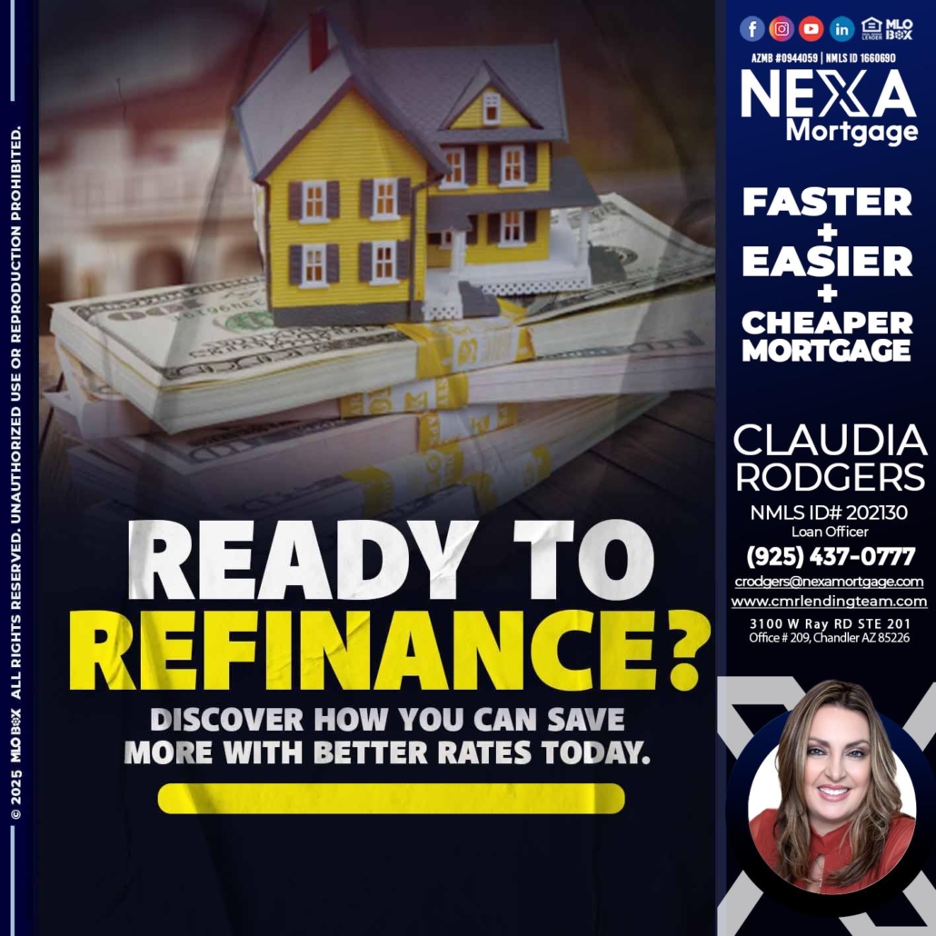 Hi, my name is Claudia Rodgers. I’m a Loan Officer with NEXA Mortgage LLC., offering personalized mortgage solutions, fast customized quotes, great rates and service with integrity.