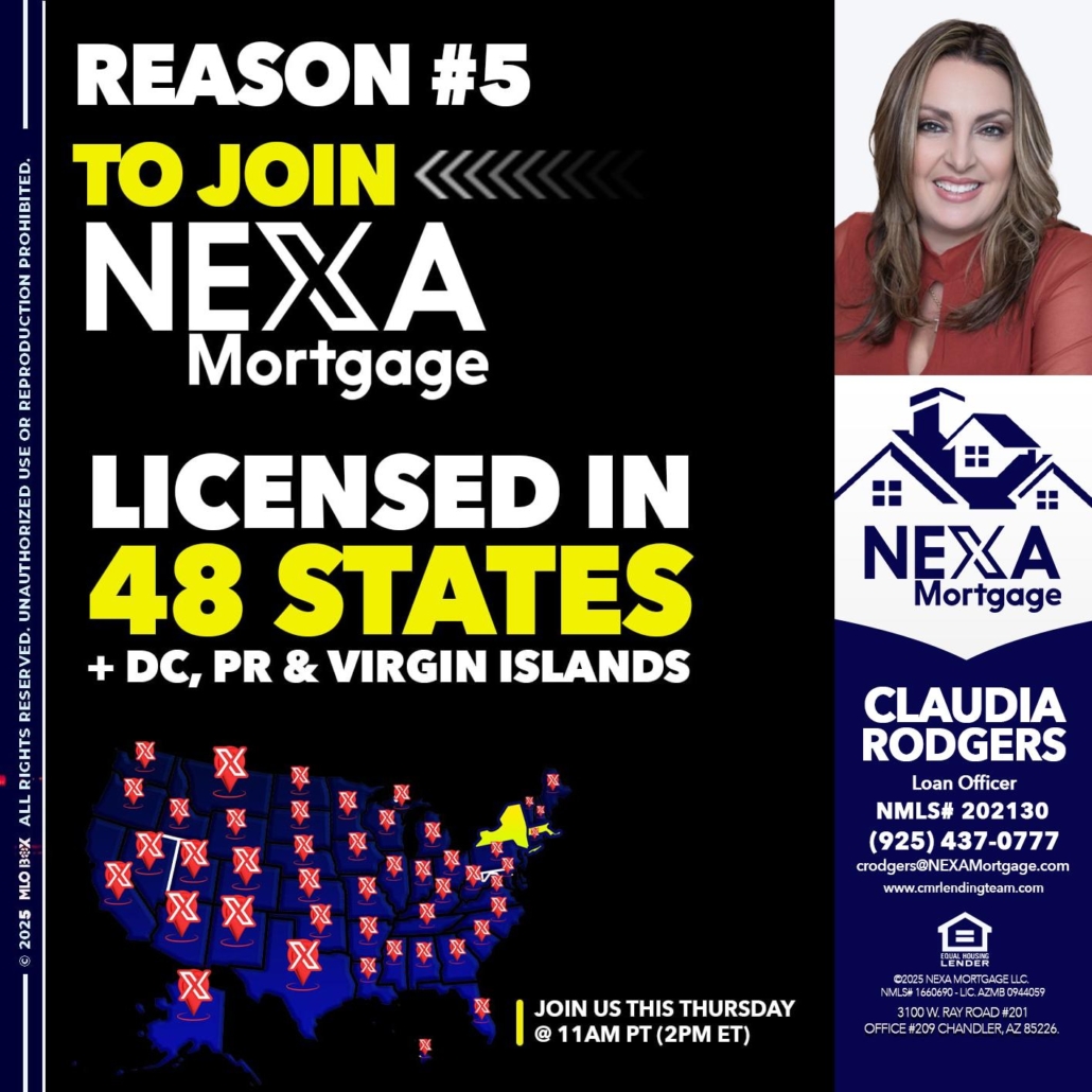 Hi, my name is Claudia Rodgers. I’m a Loan Officer with NEXA Mortgage LLC., offering personalized mortgage solutions, fast customized quotes, great rates and service with integrity.