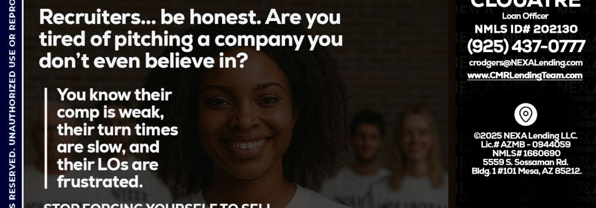 Hi, my name is Claudia Rodgers. I’m a Loan Officer with NEXA Mortgage LLC., offering personalized mortgage solutions, fast customized quotes, great rates and service with integrity.