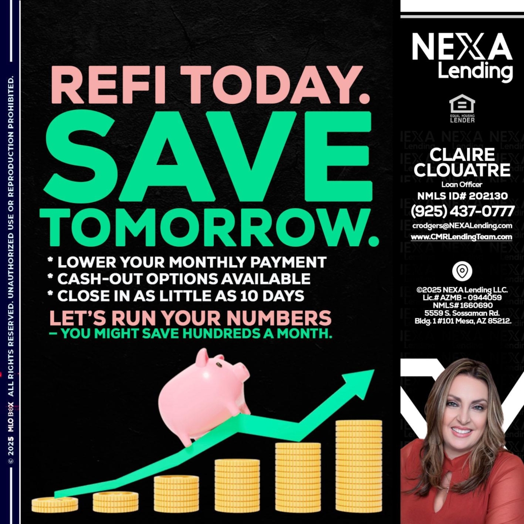 Hi, my name is Claudia Rodgers. I’m a Loan Officer with NEXA Mortgage LLC., offering personalized mortgage solutions, fast customized quotes, great rates and service with integrity.