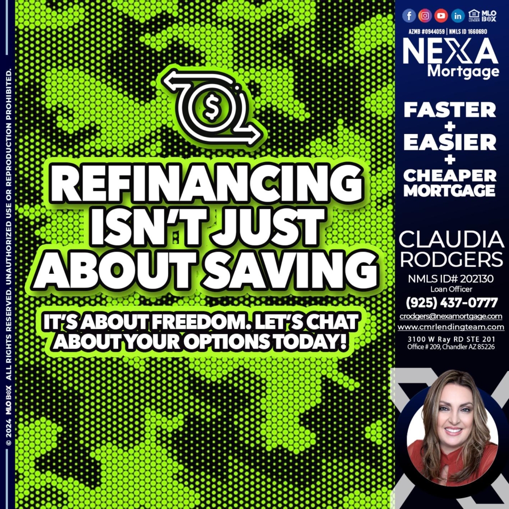 Hi, my name is Claudia Rodgers. I’m a Loan Officer with NEXA Mortgage LLC., offering personalized mortgage solutions, fast customized quotes, great rates and service with integrity.