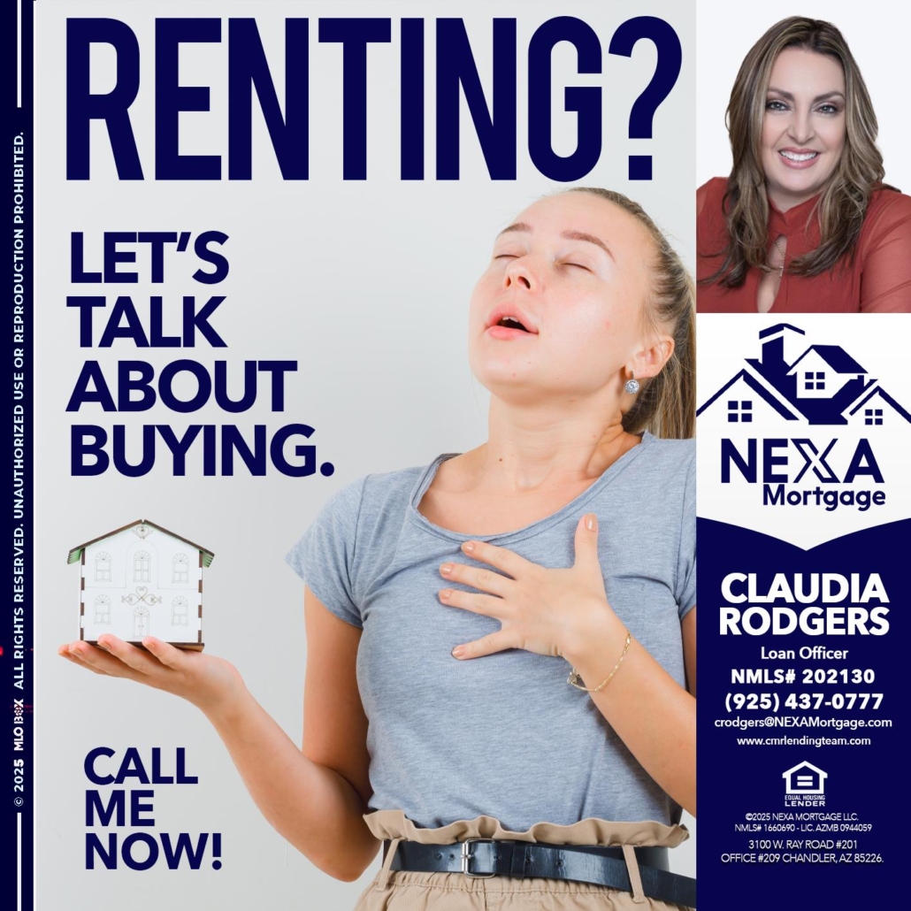 Hi, my name is Claudia Rodgers. I’m a Loan Officer with NEXA Mortgage LLC., offering personalized mortgage solutions, fast customized quotes, great rates and service with integrity.