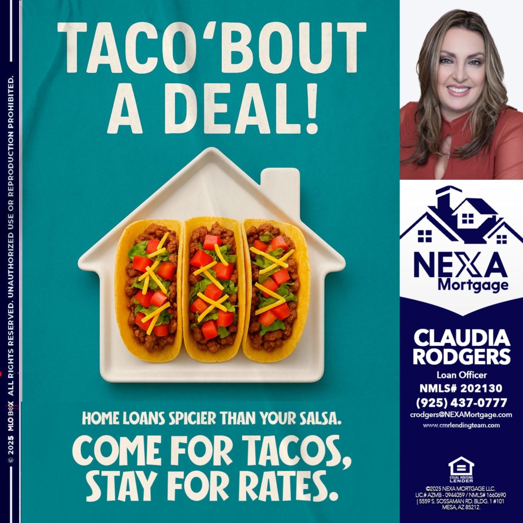 Hi, my name is Claudia Rodgers. I’m a Loan Officer with NEXA Mortgage LLC., offering personalized mortgage solutions, fast customized quotes, great rates and service with integrity.