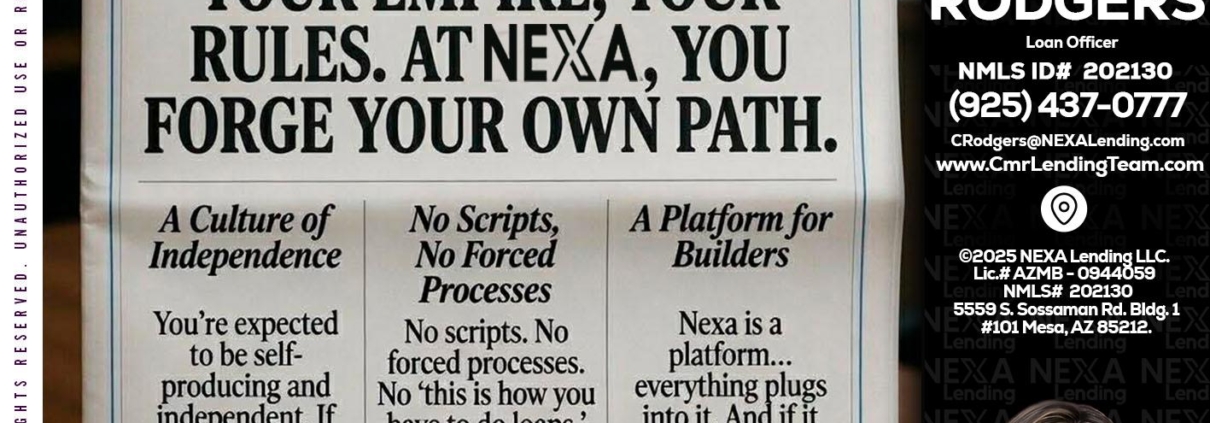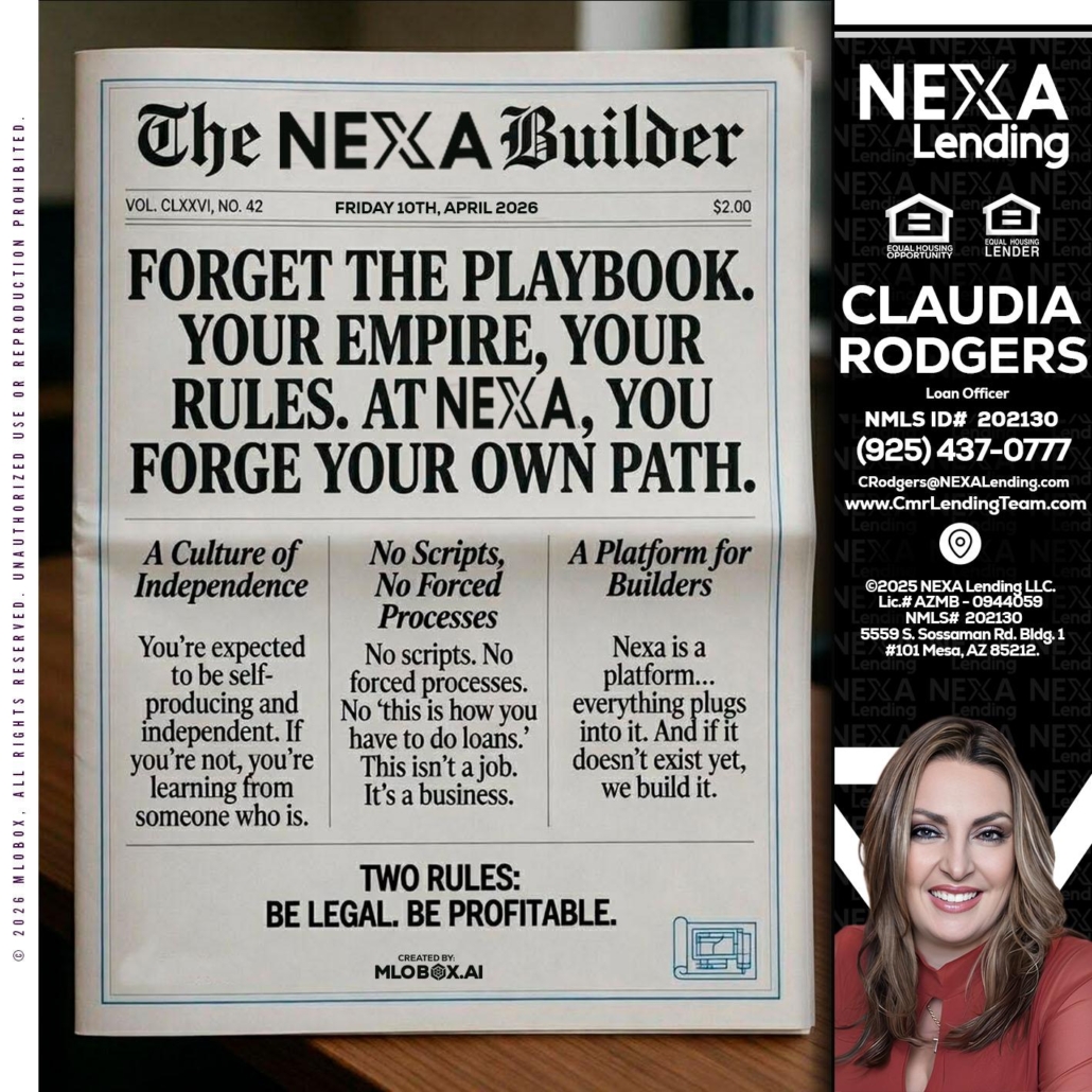 Hi, my name is Claudia Rodgers. I’m a Loan Officer with NEXA Lending LLC., offering personalized mortgage solutions, fast customized quotes, great rates and service with integrity.