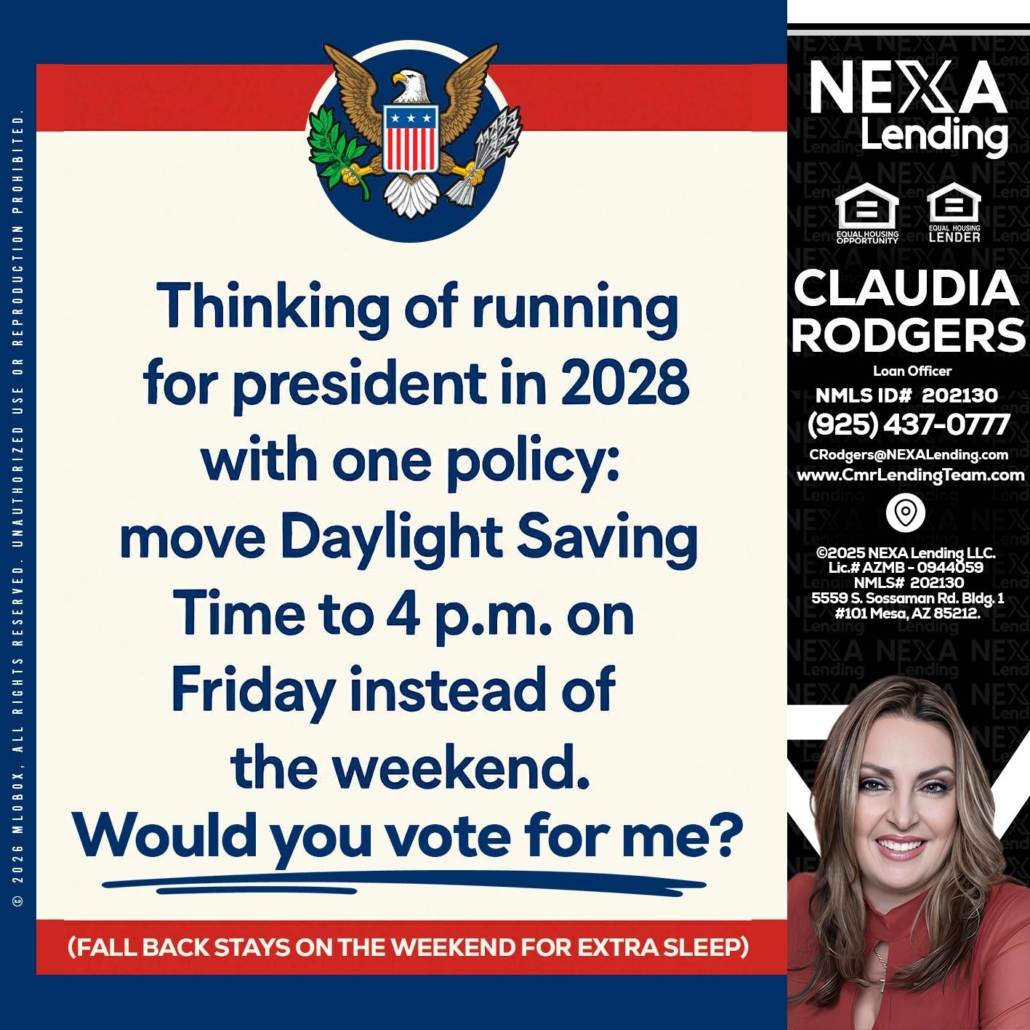 Hi, my name is Claudia Rodgers. I’m a Loan Officer with NEXA Lending LLC., offering personalized mortgage solutions, fast customized quotes, great rates and service with integrity.
