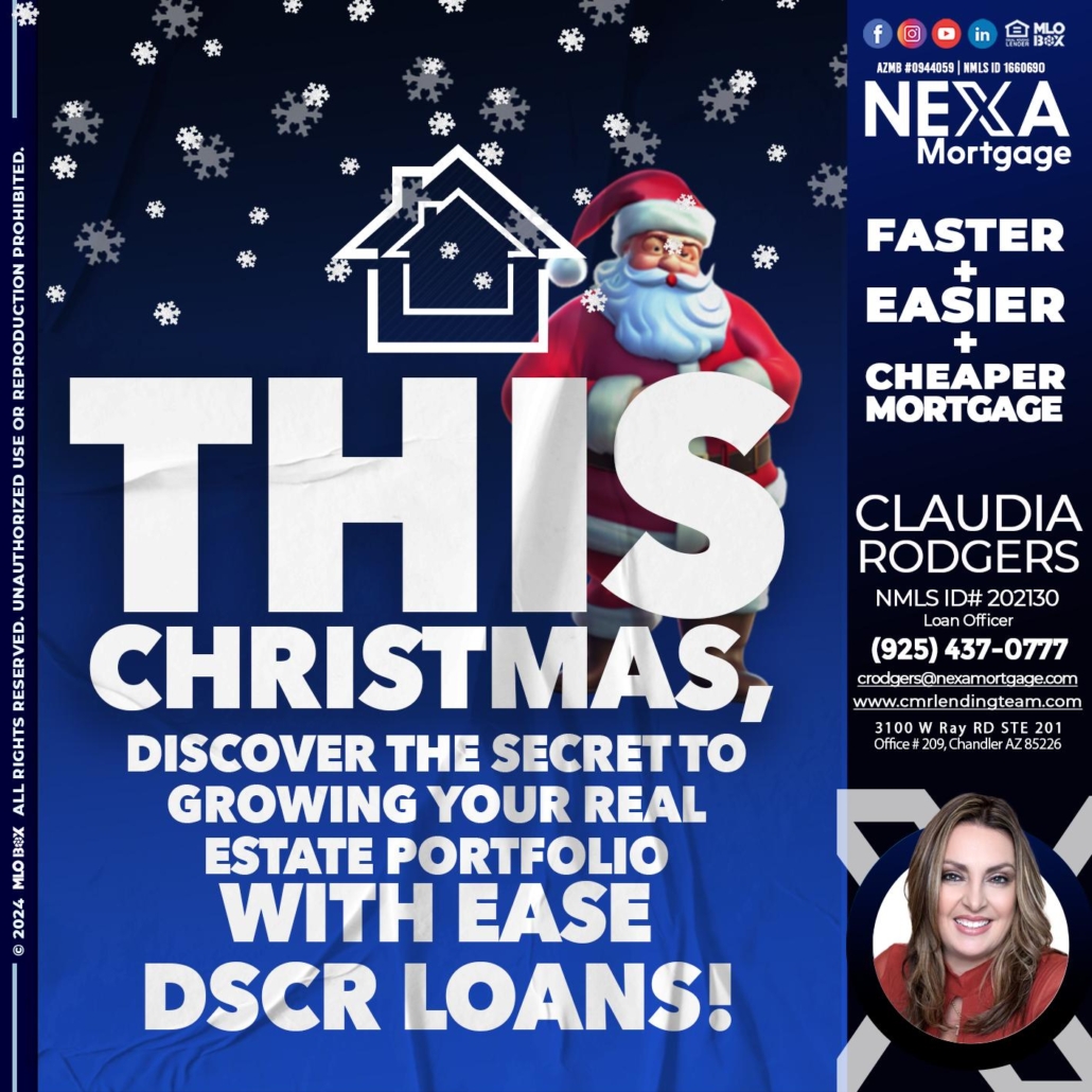 Hi, my name is Claudia Rodgers. I’m a Loan Officer with NEXA Mortgage LLC., offering personalized mortgage solutions, fast customized quotes, great rates and service with integrity.