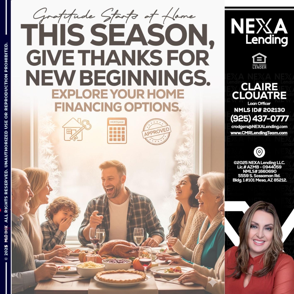 Hi, my name is Claudia Rodgers. I’m a Loan Officer with NEXA Mortgage LLC., offering personalized mortgage solutions, fast customized quotes, great rates and service with integrity.
