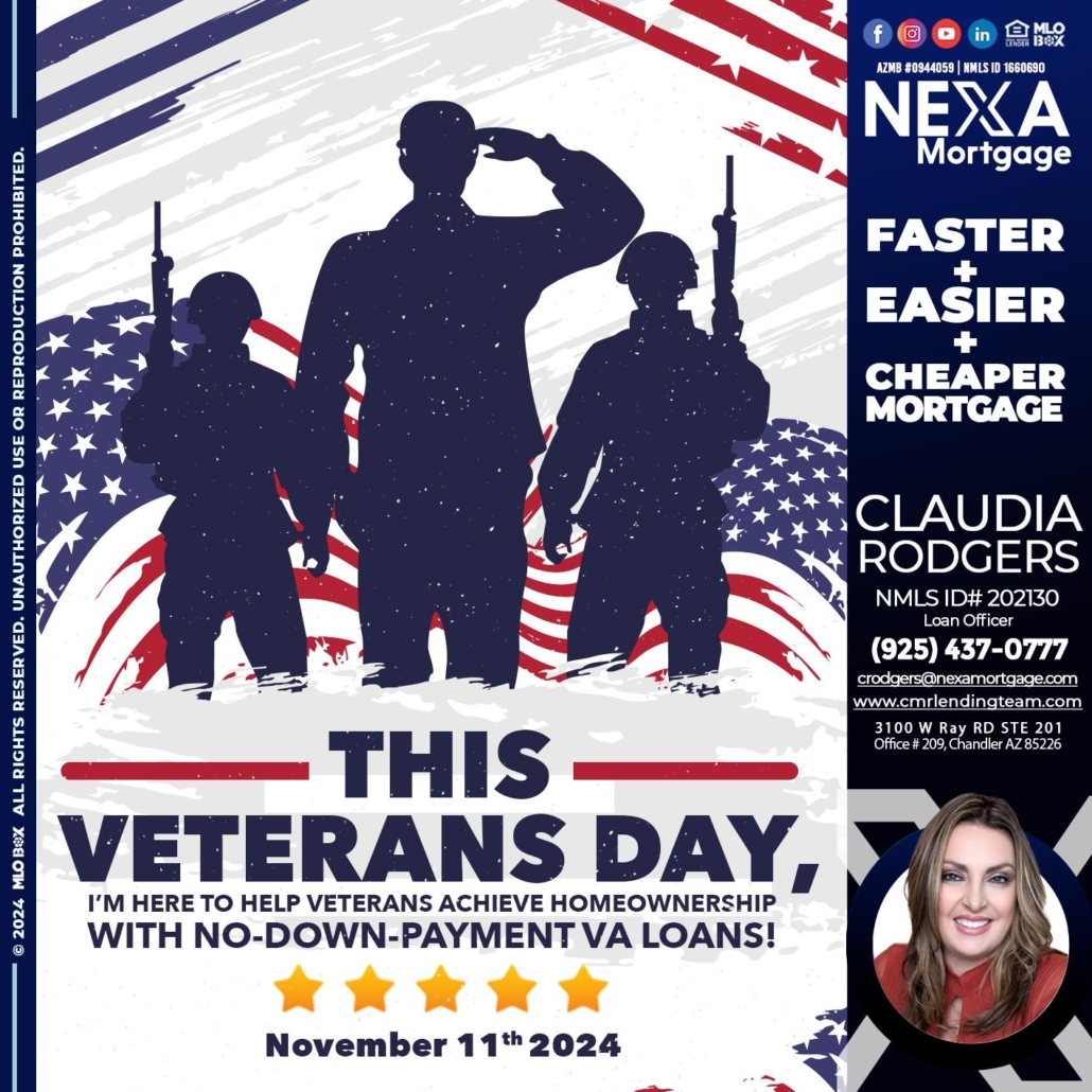 Hi, my name is Claudia Rodgers. I’m a Loan Officer with NEXA Mortgage LLC., offering personalized mortgage solutions, fast customized quotes, great rates and service with integrity.