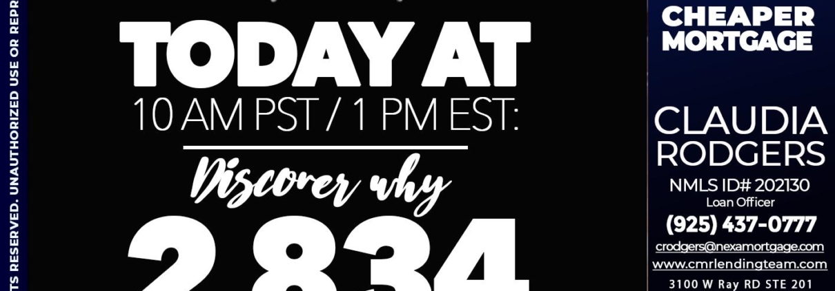 Hi, my name is Claudia Rodgers. I’m a Loan Officer with NEXA Mortgage LLC., offering personalized mortgage solutions, fast customized quotes, great rates and service with integrity.