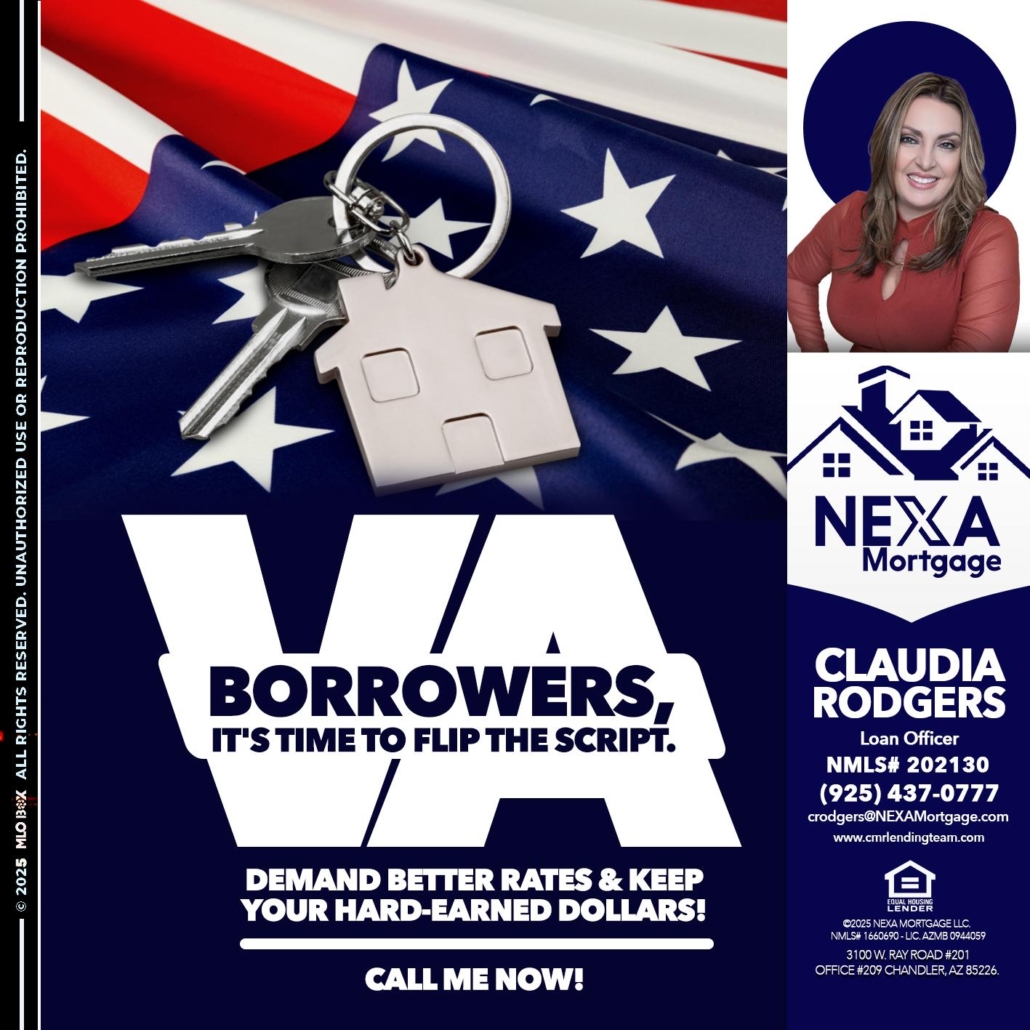Hi, my name is Claudia Rodgers. I’m a Loan Officer with NEXA Mortgage LLC., offering personalized mortgage solutions, fast customized quotes, great rates and service with integrity.