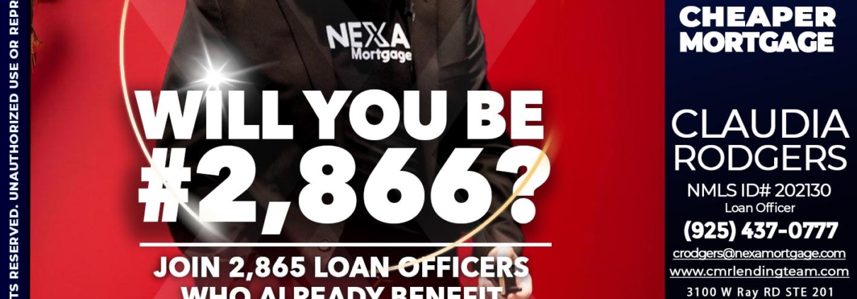 Hi, my name is Claudia Rodgers. I’m a Loan Officer with NEXA Mortgage LLC., offering personalized mortgage solutions, fast customized quotes, great rates and service with integrity.