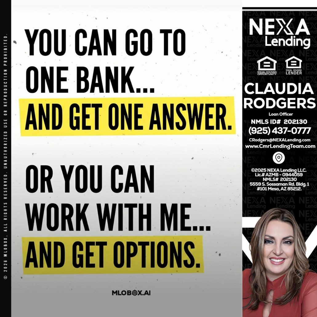Hi, my name is Claudia Rodgers. I’m a Loan Officer with NEXA Lending LLC., offering personalized mortgage solutions, fast customized quotes, great rates and service with integrity.